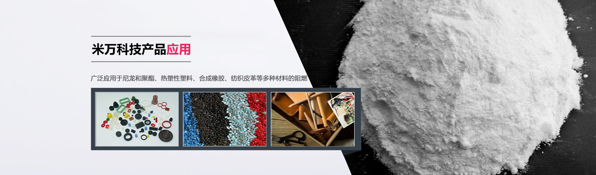 米萬科技在橡膠行業有一系列研發(fā)的阻燃劑產品。產品不含鹵素,由于表面經過改